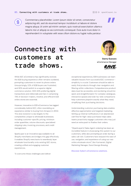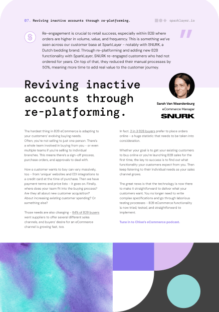 Implementing SparkLayer meant we were able to prove the value of taking B2B online quickly to our internal stakeholders. It also meant that we have rapidly been able to provide a differentiated and improved customer experience for our customers.